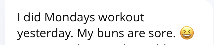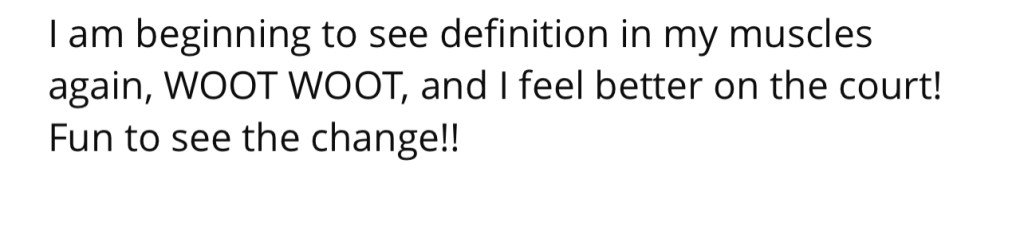 “I am beginning to see definition in my muscles again, WOOT WOOT!”