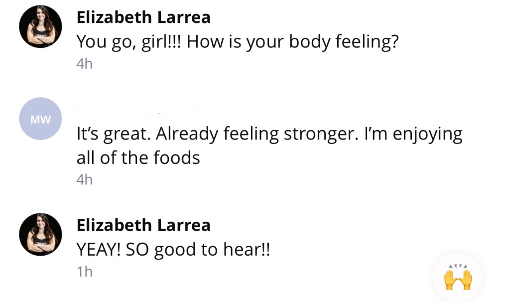 *How is nutrition personalized? – You’ll get custom macro guidance and meal options that fit your lifestyle. Plus, weekly check-ins will focus heavily on how your nutrition went during the week – and I’ll give personalized feedback!